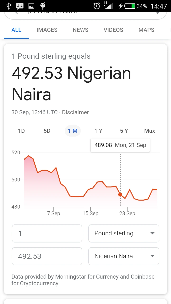 Good News: Nigerian Naira Is No Longer N600.00 Or N530.00 Per Pound Sterling, Here Is The New Value.