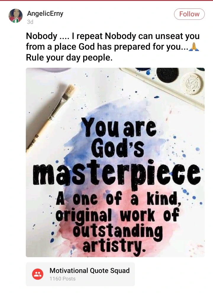 9. AngelicErny want you to know that nobody can unseat you from God’s plan for you.