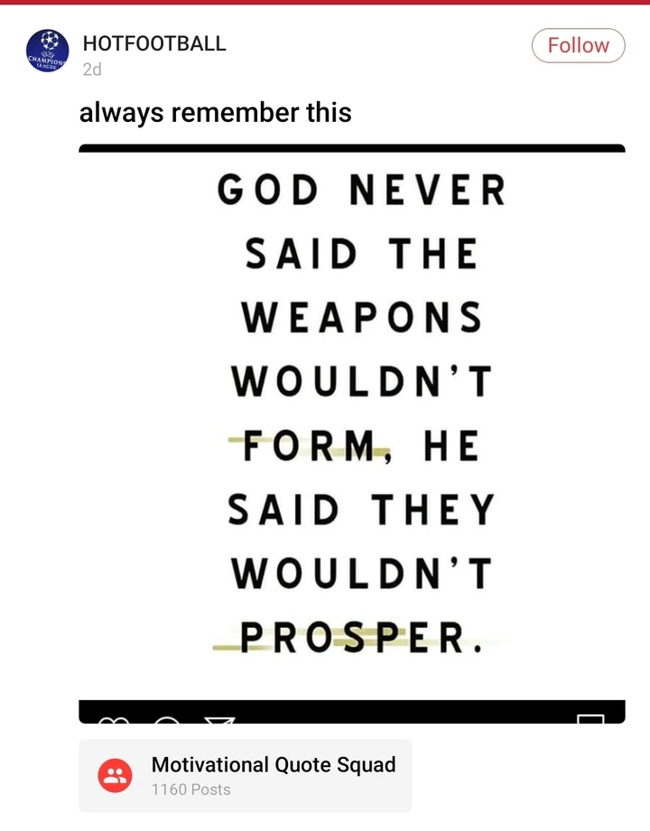 7. Hotfootball wants you to know that the weapons will form, but they won’t prosper!