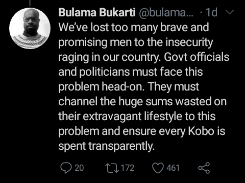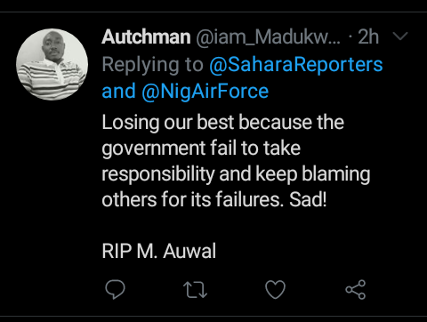 He was said to have been killed by terrorists while on duty at Birnin Gwari, a local government area of Kaduna state. According to Bukarti, he was the best graduating officer in one of the Nigerian Air Force courses which were recently held in Bauchi State. (See his caption below)