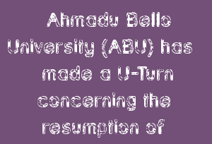 Ahmadu Bello University (ABU) Has Made A U-Turn Concerning The Resumption Of Academic Activities.