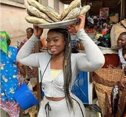 Citizens who have been intrigued by the slay queen – are wondering what prompted her to land in the market, with all her “assets†and beauty.