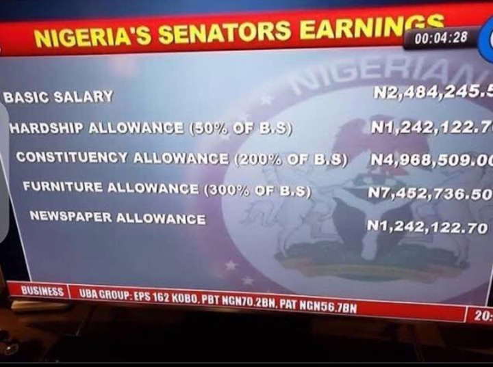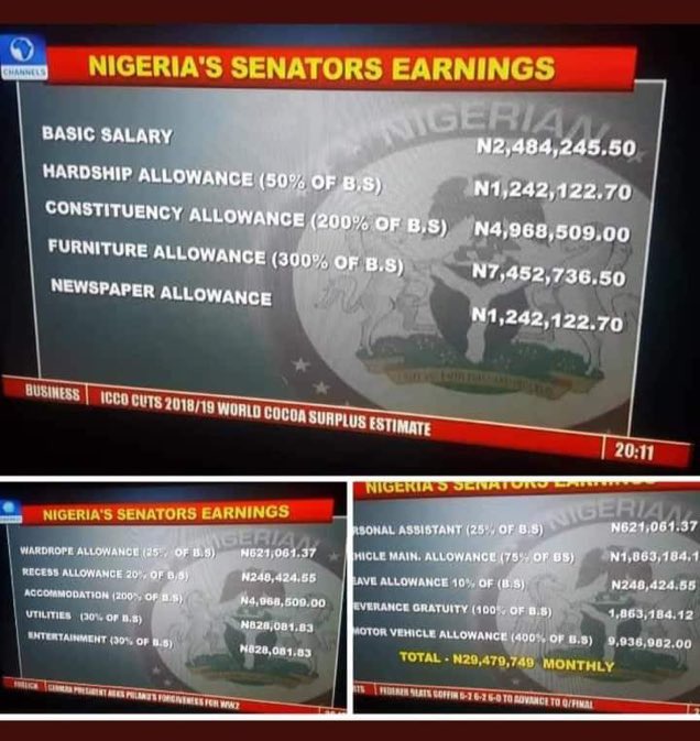 Nigerian senators earns 29 million per month, which translates to 348million naira, almost double on paper.