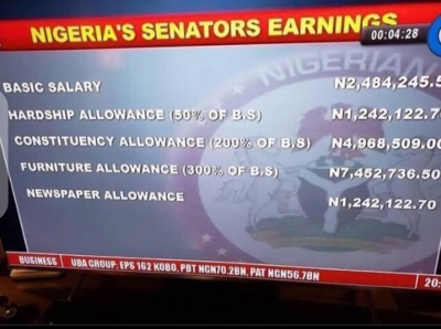 Just one senator earns the salary of 1000 Nigerians.