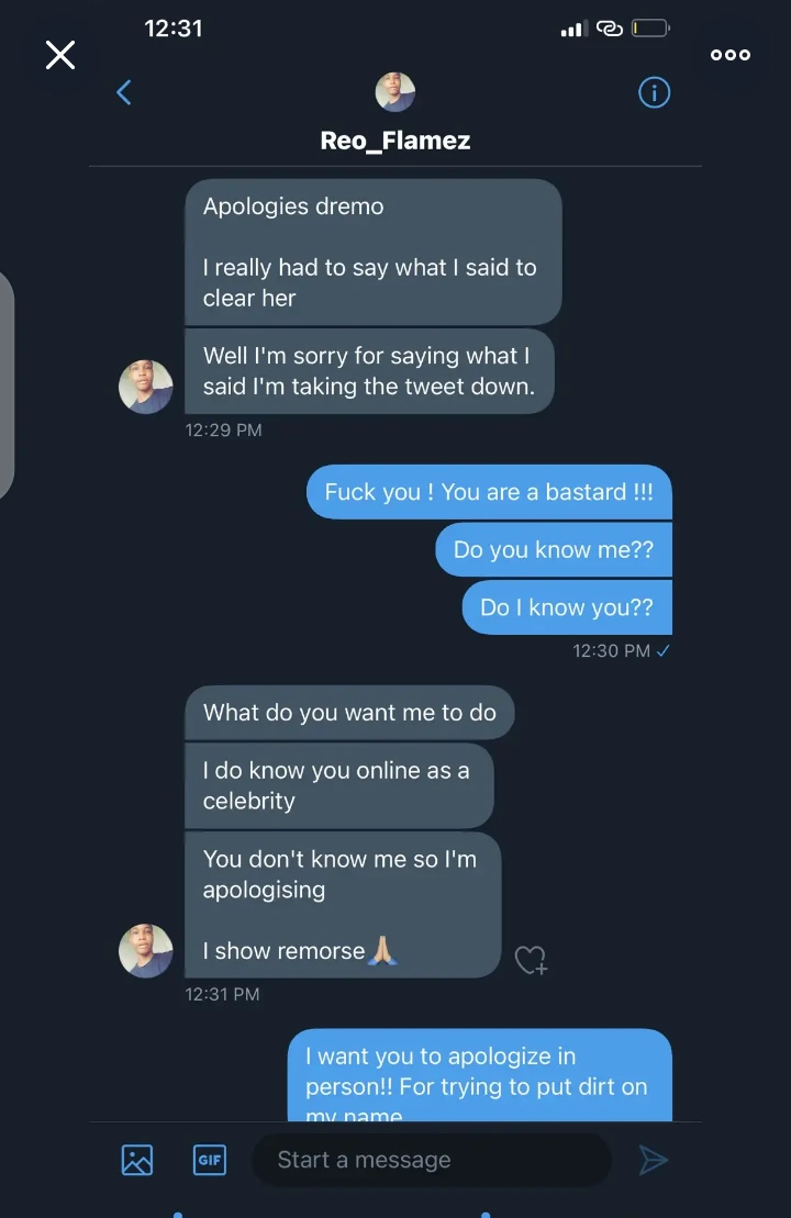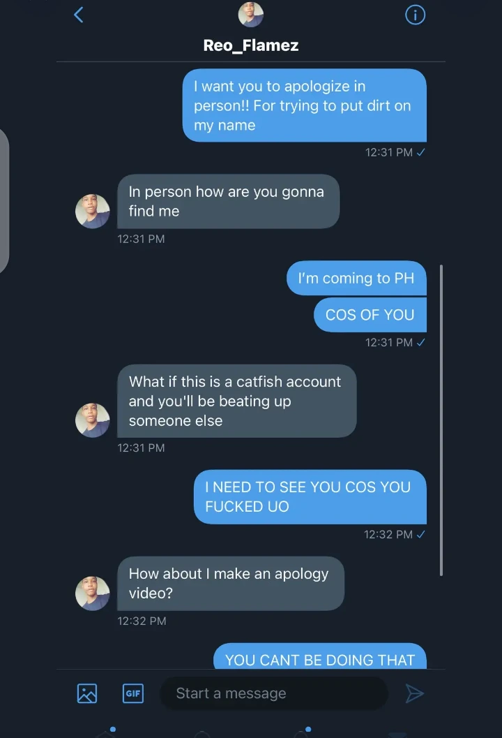 Dremo threatened he was going to locate the young and teach him a lesson. Aside the message the young man who is known as Reo_Flamez also made a video to apolgize in order to settle everything. He us some screenshots of thier messages.