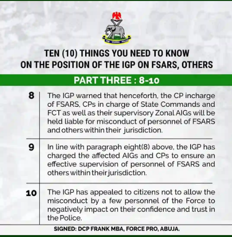 The Document Released By The I.G Of Police On Ten Things You Need To Know On SARS Petition