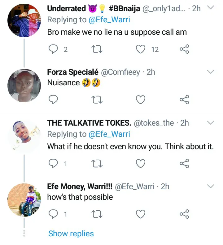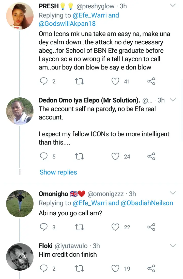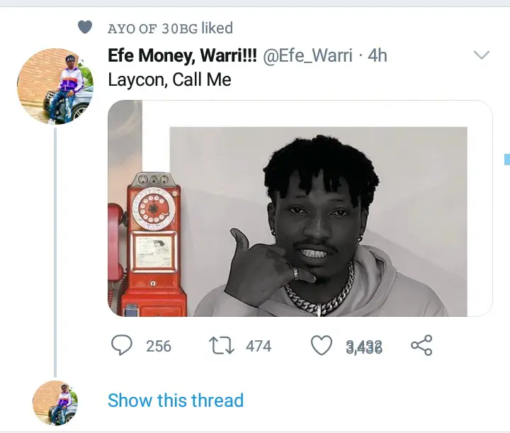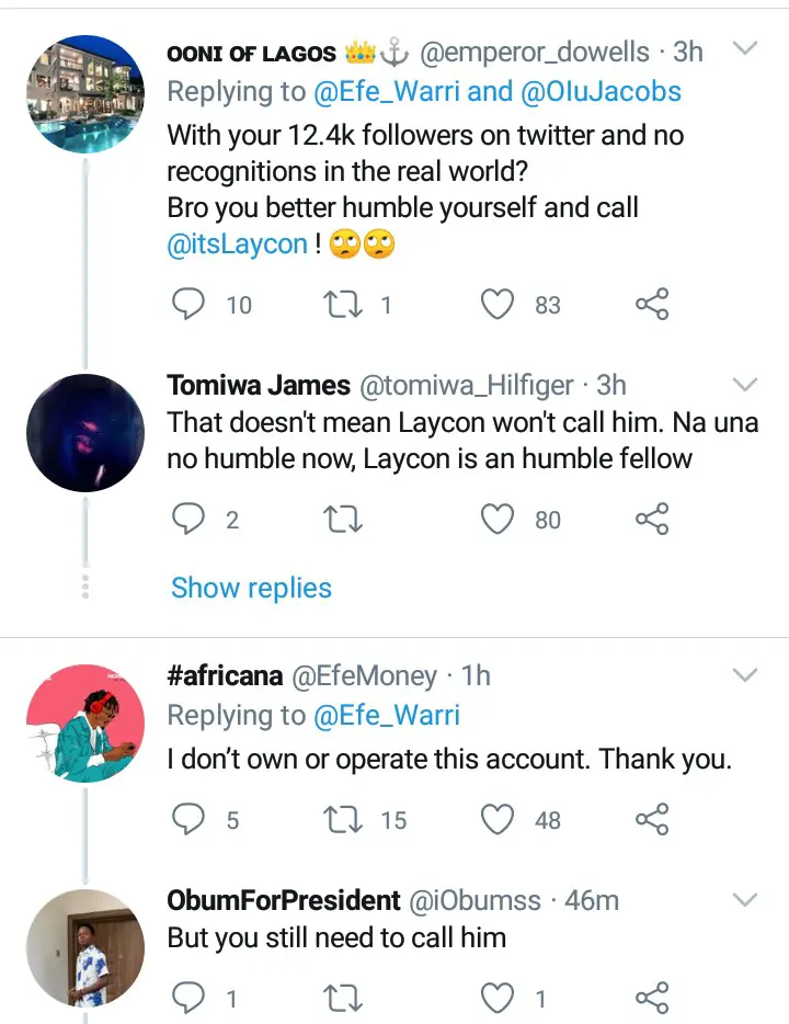 This Efe's post attracted many insults to himself as many people were blasting him for being too small to tell Laycon to call him. Some people were not happy with what Efe told Laycon to do and insisted that Efe is the person who is supposed to Call Laycon and not Laycon call him.