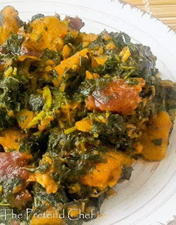 Smoked Panla Fish, Potato And Green Leaf Porridge.