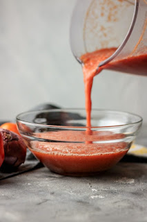 Blended tomatoes, pepper and onion