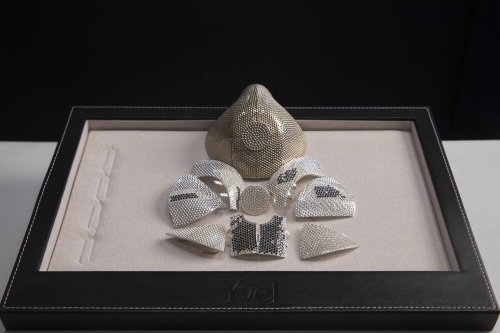 The 18-karat white gold masks will be embellished with 3,600 white and black diamonds and outfitted with top-rated N99 filters at the request of the buyer, stated fashion designer Isaac Levy.