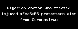 Nigerian Doctor Who Treated Injured #EndSARS Protesters Dies From Coronavirus