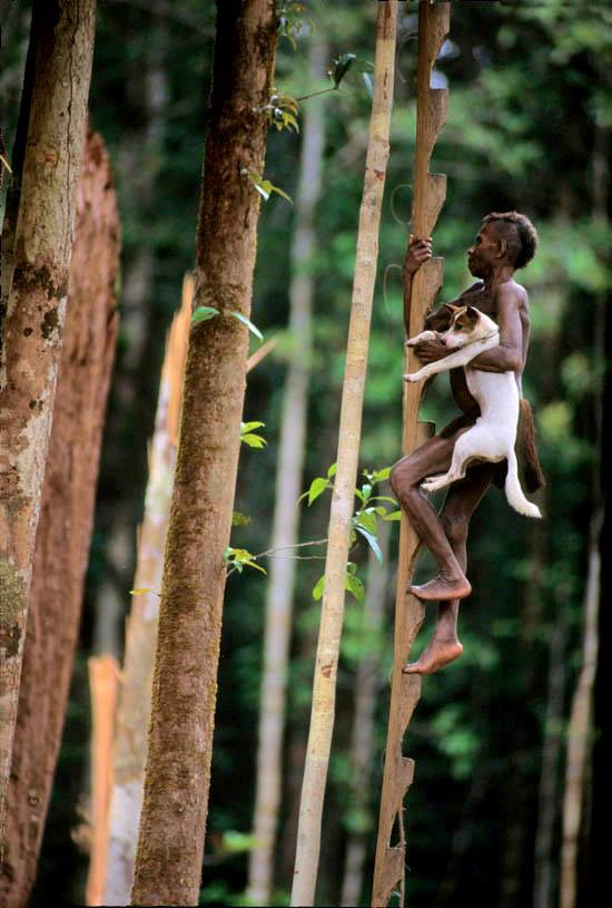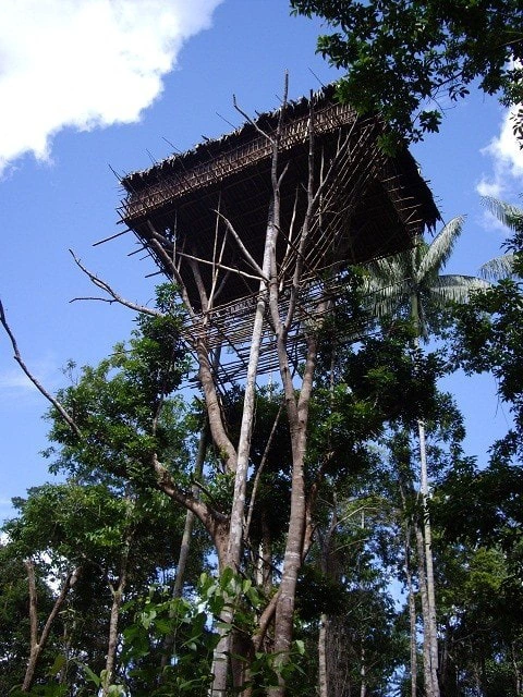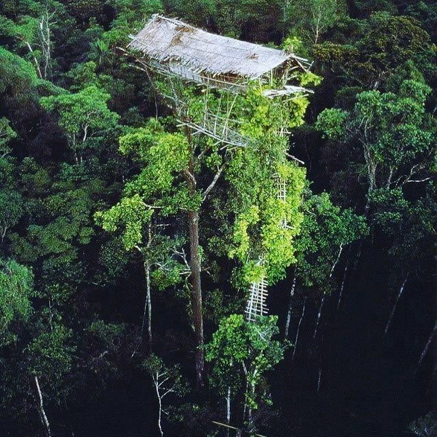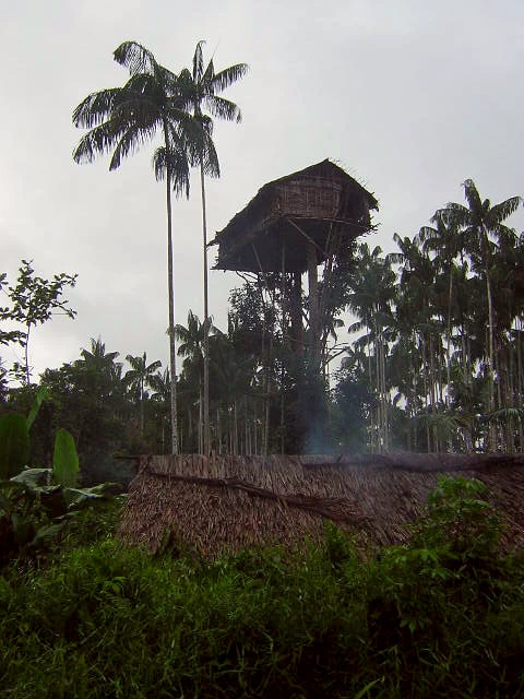 the high stilt houses of the korowai houses, well above the flood water leves, serves as a form of defensive fortification to disrupt any rival clans at all from capturing their people which majorly concern the women and children for slavery or what is called cannibalism.