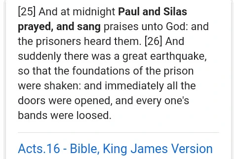 The praises of Paul and Silas in the prison made God to send his Angel who came for their release, to the extent that those that put them in prison was begging them for forgiveness.