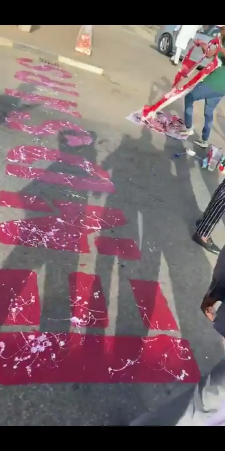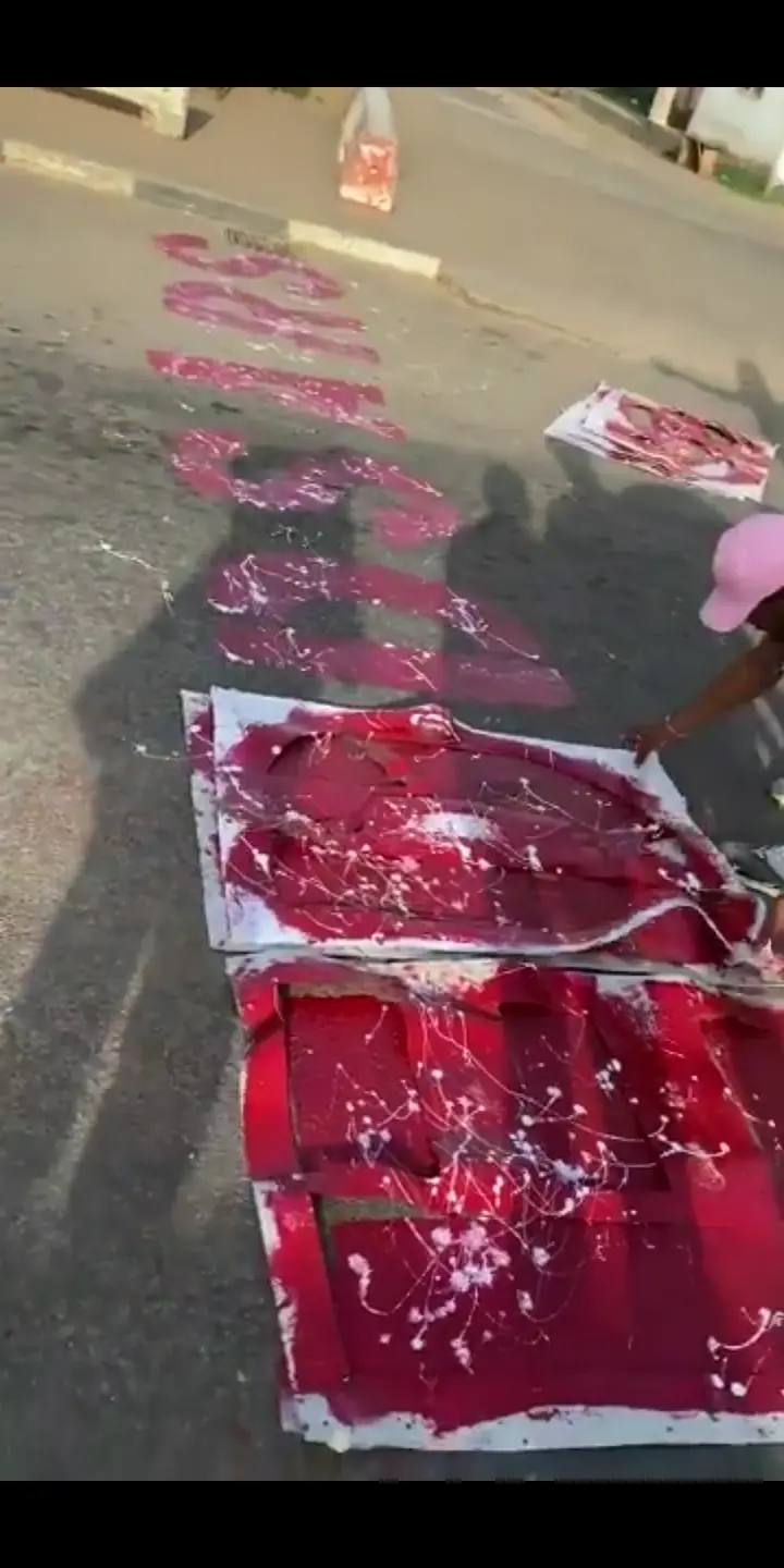 He has painted a major road in Abuja with the End SARS words while he and his small group kept chanting end SARs now.