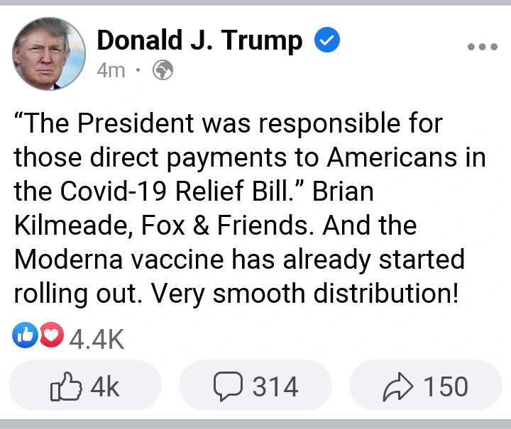 See What President Donald Trump Has Just Said To Americans In His Official Facebook Page.