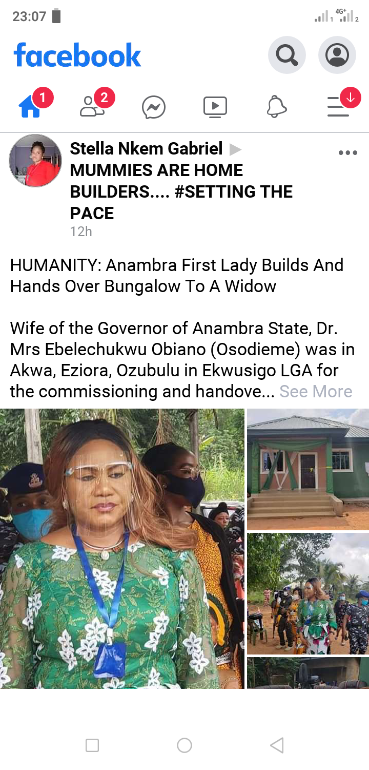 According to the source Stella Nkem Gabriel who posted it on Facebook group MUMMIES ARE HOME BUILDERS.... #SETTING THE PACE. She posted it with caption; HUMANITY: Anambra First Lady Builds And Hands Over Bungalow To A Widow.