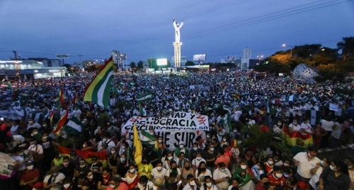 In Santa Cruz, the country’s economic capital, some 40,000 people assembled in the Christ the Redeemer Square, which has only been the site of right-wing demonstrations in the past.