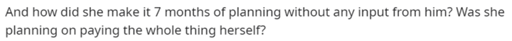 People just couldn’t understand how the bride could go own with her wedding preparation for 7 months without talking to her supposedly groom-to-be. “Was she planning on paying the whole thing herself?†one asked.