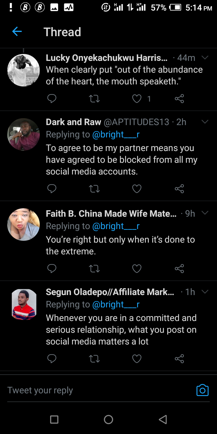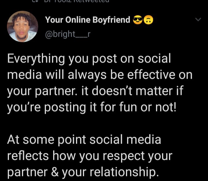 According to the young man who addressed himself on his Twitter profile as 'Your Online Boyfriend', things people share on social media, sometimes reflect in real life.