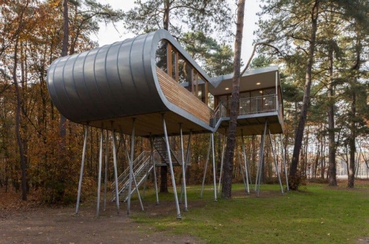 If you grew up a flower child, then chances are you either adapted that lifestyle into your own or would prefer to forget it. If it’s the former, then this tree fort-style home would be perfect to live within. It’s centered perfectly in the middle of a forested area, supported by metal beams, and built from strong lumber.