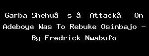 Garba Shehus Attack On Adeboye Was To Rebuke Osinbajo - By Fredrick Nwabufo