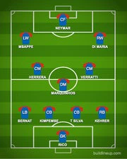 Paris Saint Germain- Rico; Bernat, Kimpembe, Thiago, Kehrer; Herrera, Marquinhos, Veratti; Mbappe, Neymar, Di-maria.