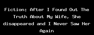 Fiction: After I Found Out The Truth About My Wife, She Disappeared And I Never Saw Her Again