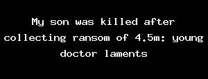 My Son Was Killed After Collecting Ransom Of 4.5m: Young Doctor Laments