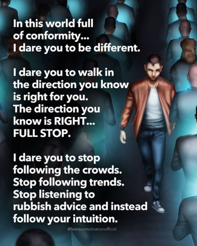I dare you to stop following the crowd. Stop following trends. Stop listening to rubbish advice and instead follow your intuition.