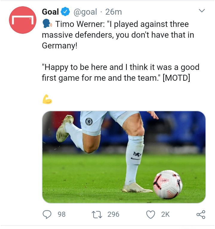 Timo Werner made his debut game on the 14th September 2020 for Chelsea against Brighton football club. And after the game he was quick to react to the EPL defenders and