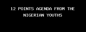 12 POINTS AGENDA FROM THE NIGERIAN YOUTHS